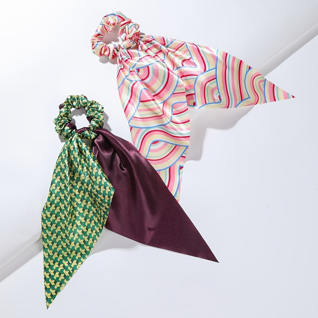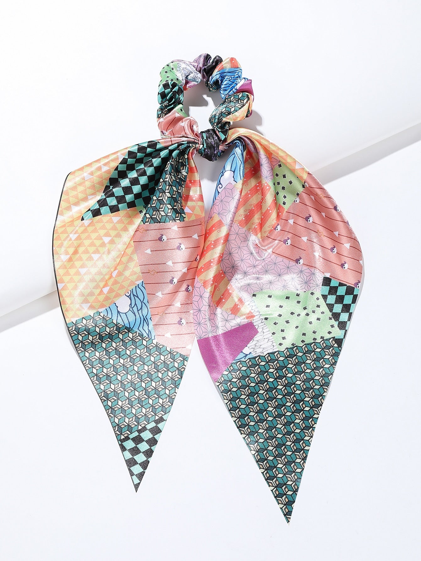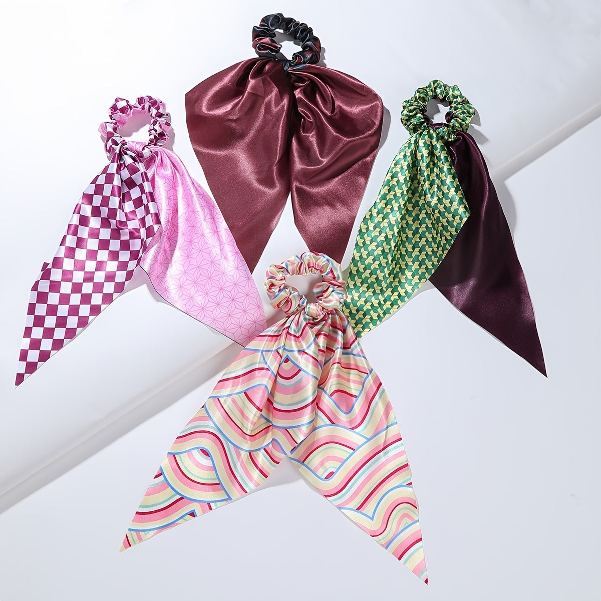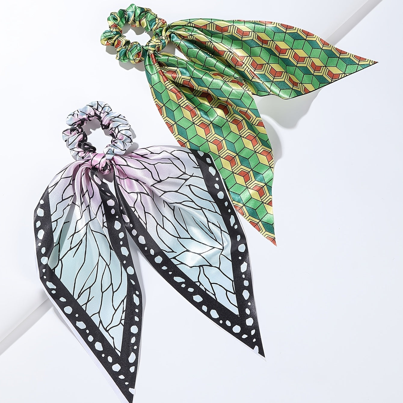4pcs Adorable Japanese Anime Cartoon Printed Fabric Bowknot Hair Scarves with Elastic Hair Ties for Women - Soft, Comfortable, and Easy to Wear Ponytail Holders for Various Hairstyles - Cute Hair Accessories for Anime Fans