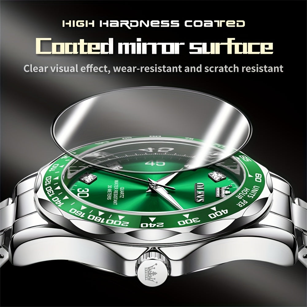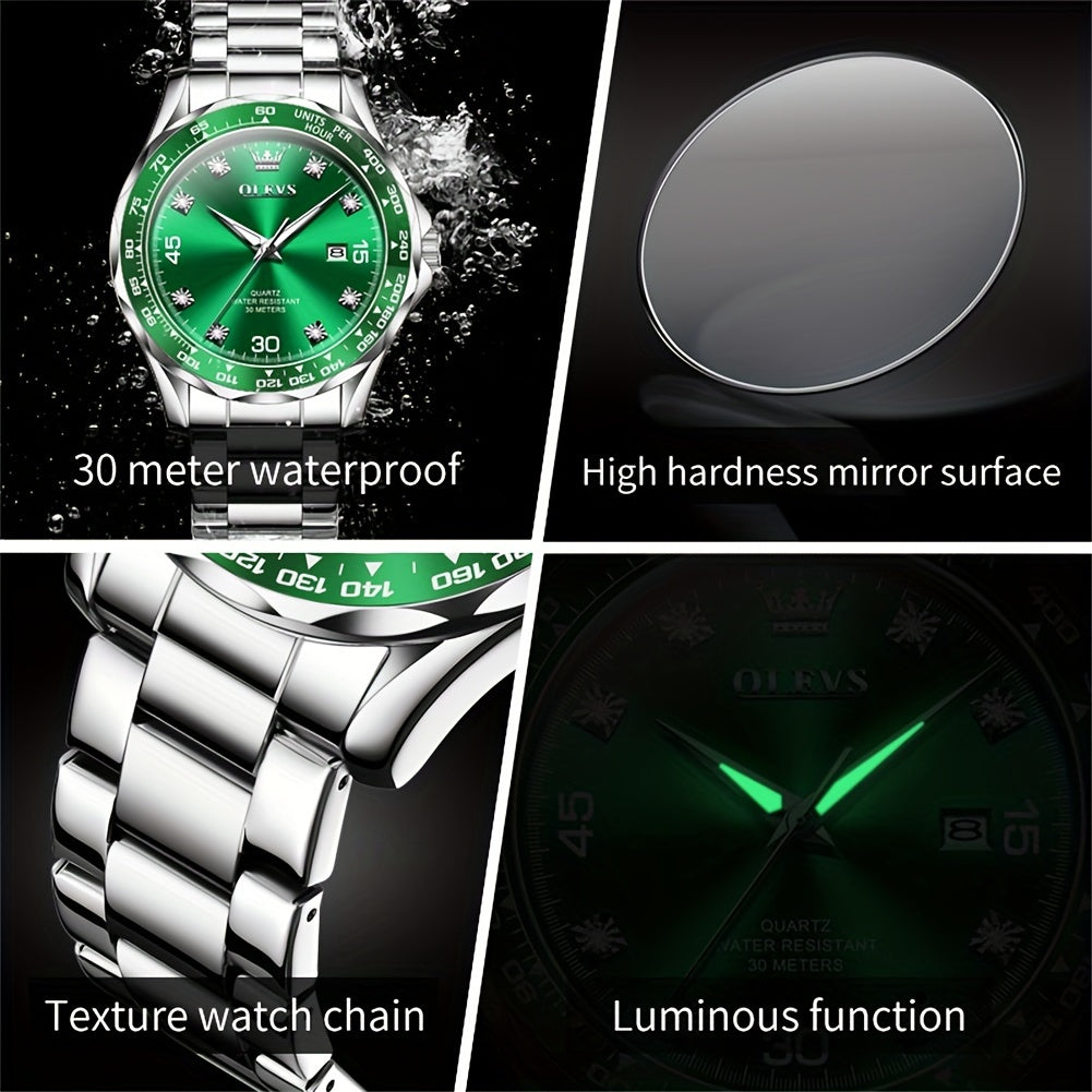 OLEVS Watches for Men Elegant Dress Diamond Analog Quartz Watch Two Tone Stainless Steel Waterproof Luminous Mens Watch Reloj para Hombre